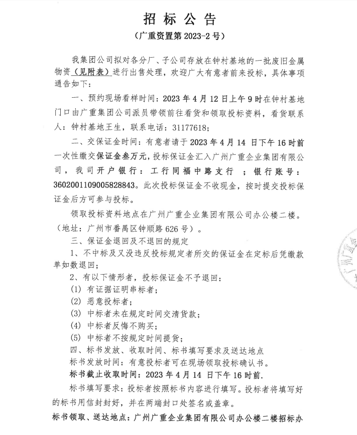 廢舊金屬物資處置(廣重資置2023-2號(hào))